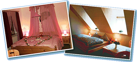 | Die Zimmerkapazitäten unseres Betriebes sind Einzel/Doppel- und auch 3-Bett-Zimmer 4 Appartments und eine Hochzeitssuite. Übernachtungsmöglichkeit im Haus für 42 Personen. Alle unsere Zimmer verfügen über Dusche/WC, TV/Radio und Telefon. Wir bieten unseren Übernachtungsgästen schon ab halb 6 Frühstück vom Buffet an. |